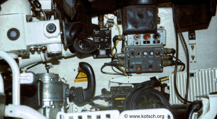 befinden sich die Hauptbedienpulte des Richtschützen. Oberhalb der Okularbaugruppe wurde der Bedienblock für den ballistischen Rechner untergebracht. Um dem Kommandanten den Einblick ins Hauptzielfernrohr zu ermöglichen, wurde ein sogenannter Direktsichtadapter mit der Okularbaugruppe des Hauptzielfernrohres verbunden. Über diesen Adapter kann der Kommandant neben dem Tagsichtkanal auch den Wärmebildkanal des Hauptzielfernrohres beobachten. Dies allerdings in Abhängigkeit davon, welchen Sichtkanal der Richtschütze